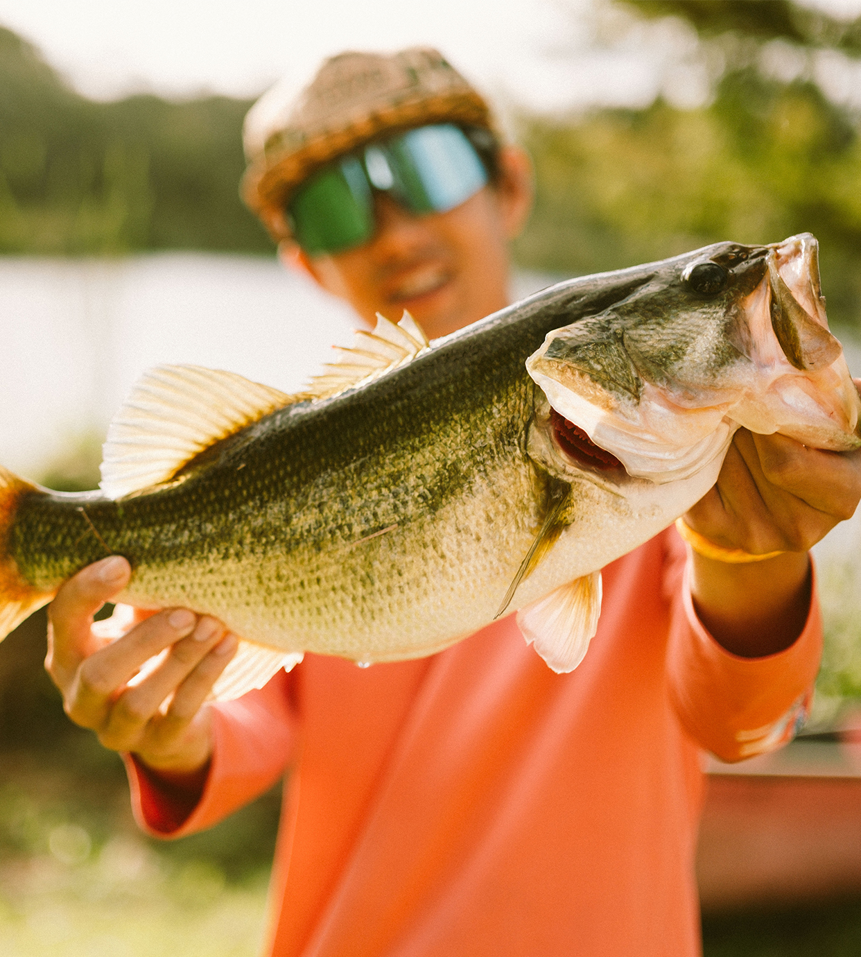 You can catch and release or take home your catch. We offer fishing pole rentals and bait at the front desk, or you’re welcome to bring your own gear. Texas rigs, night crawlers, lures, and jigs work best for bass, while hot dogs are a local favorite for catfish.