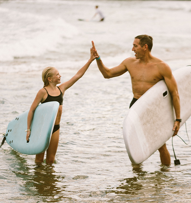 New to surfing? No problem. Our friendly, experienced surf instructors will guide you or your child through your first experience with surfing, opening the door for years of joy. We will work with you before your session to teach you the basics of surfing, including paddling, popping up, and where to stand on the board.