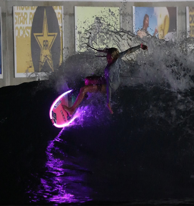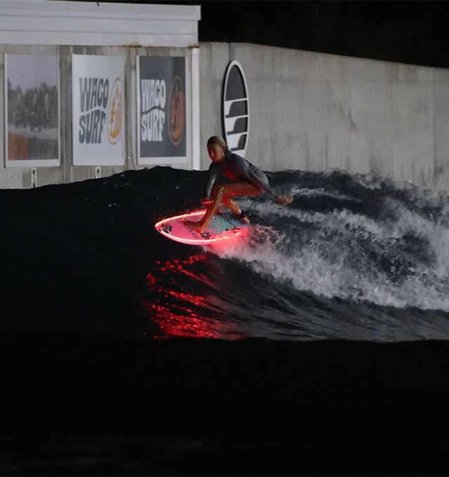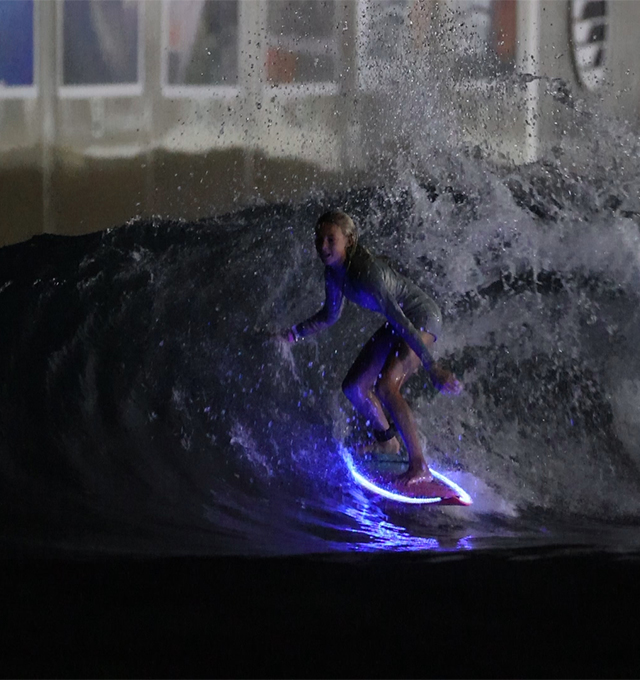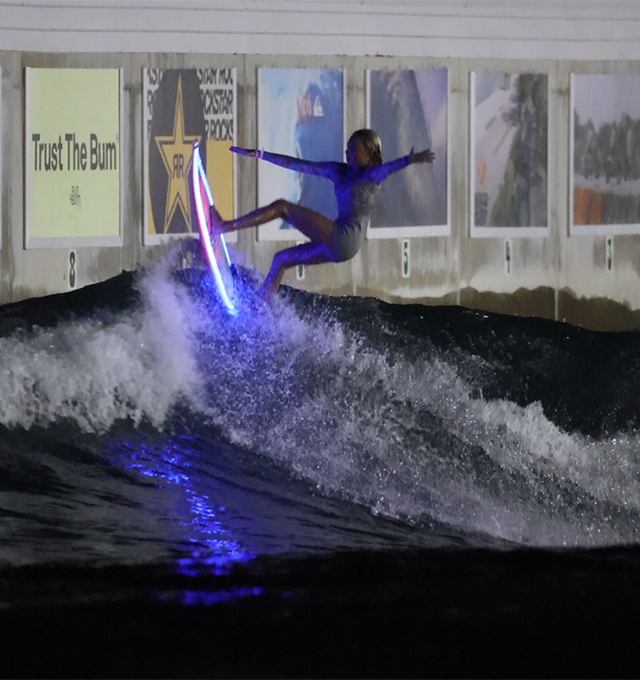 Get ready to party with music, light up boards, and perfect waves. Every night from 10pm-12am, we offer Glow Surf private sessions that include light-up boards, music, and lighting. You can choose any of the waves to surf and mix in different waves within the session. Our technology delivers 30-50 waves per session in 4 wave sets. Get glowing nighttime barrels or lit up turns with this unique nighttime surfing experience!