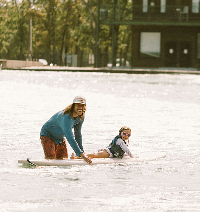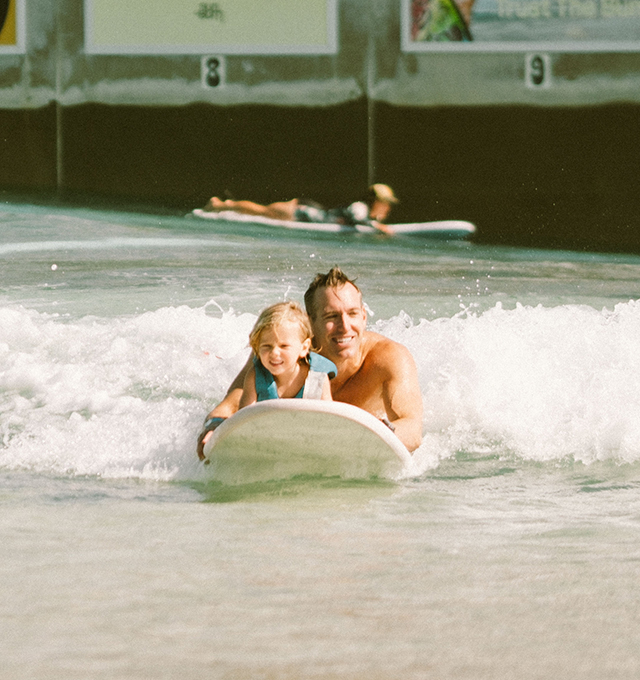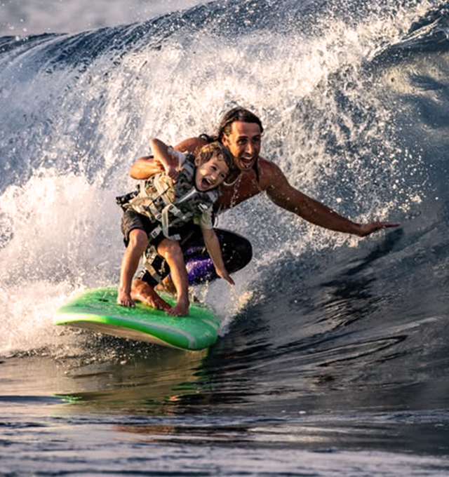 Introduce your child to surfing with a kiddo + adult shred sesh on gentle shore rollers. Show your child the joy of surfing and create lifelong memories. Ride our gentle shore rollers with your child on the front of your board. This is the perfect way to introduce your child to surfing in a safe and friendly environment.