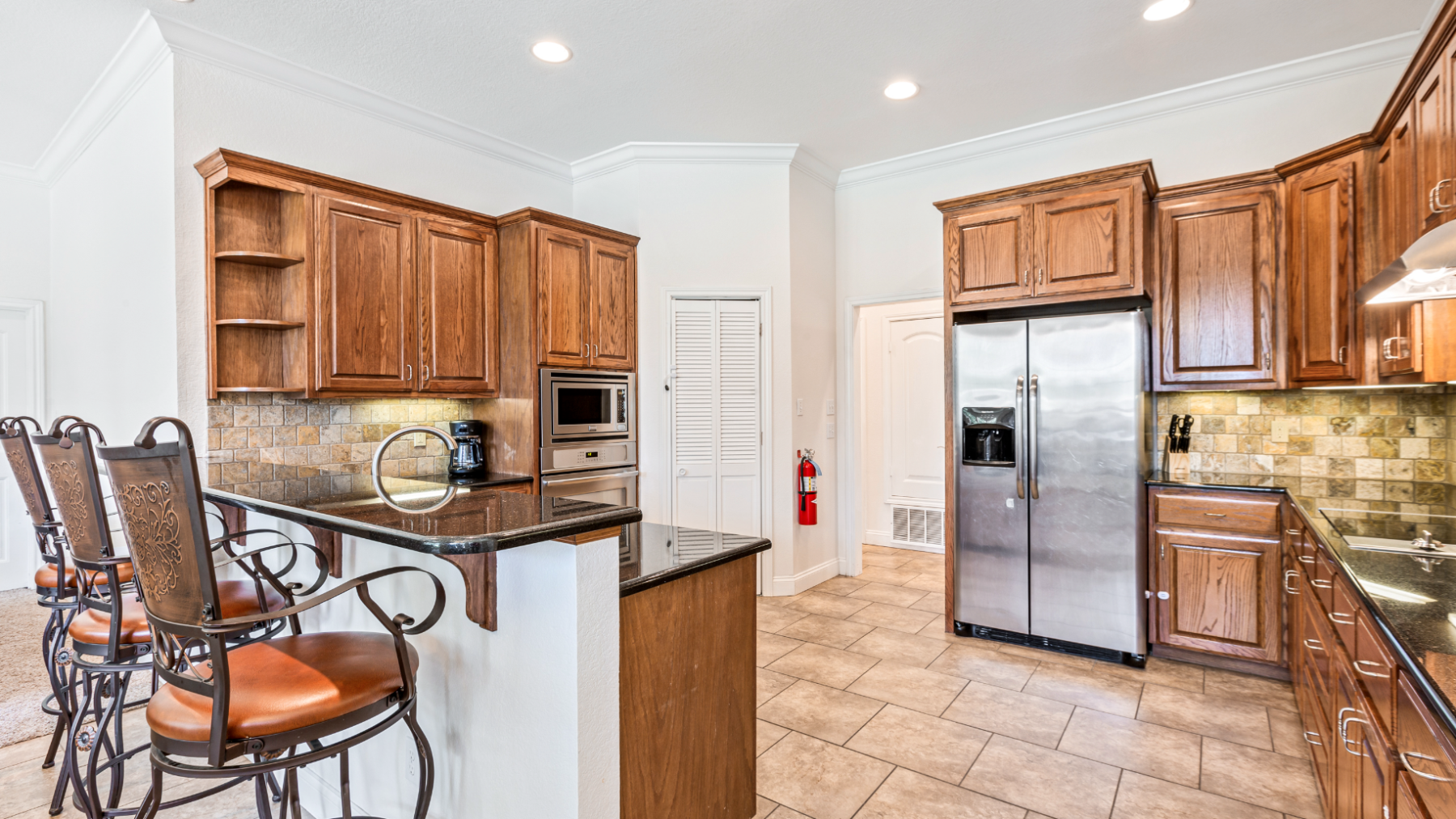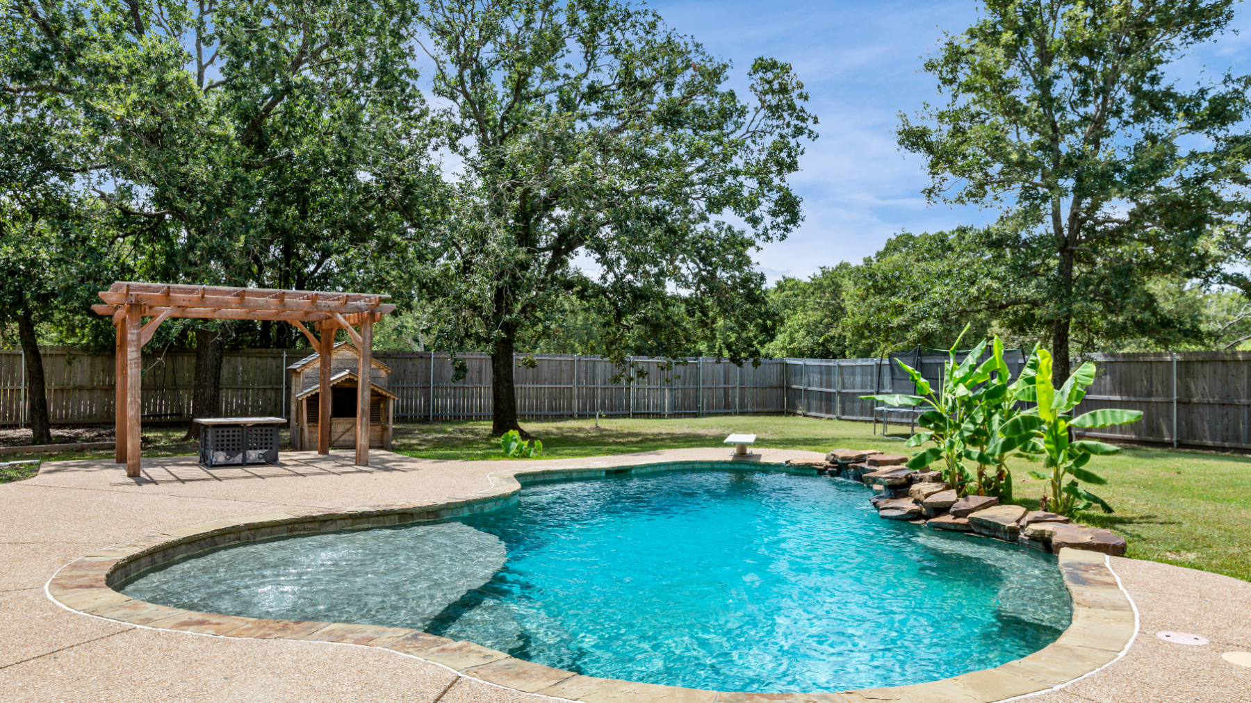 The house comes fully equipped with everything you need to cook at home, including a BBQ on the outdoor patio right next to the pool.