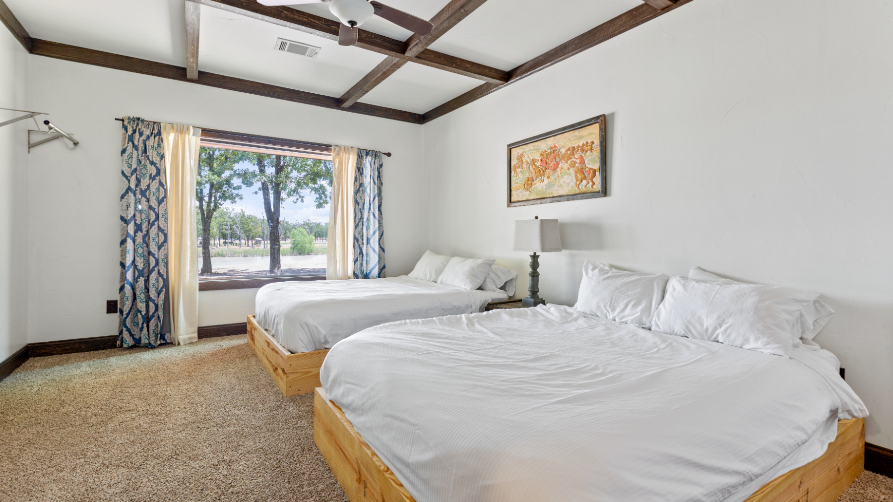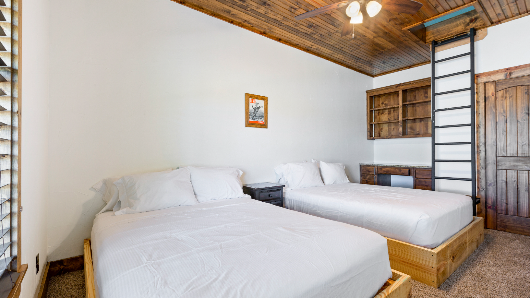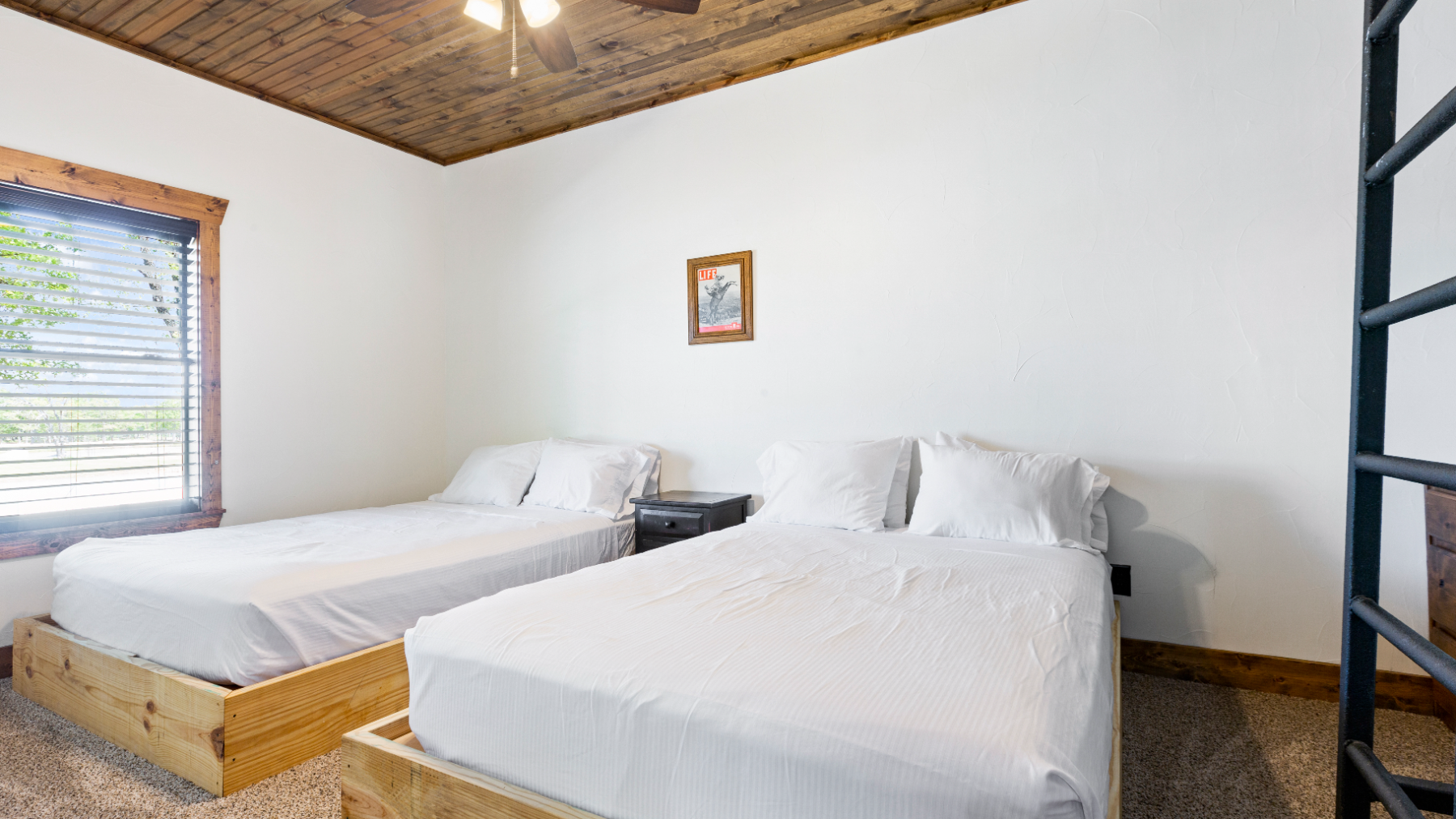 - Sleeps up to 14; 4 king/queen beds, 3 bunk beds
