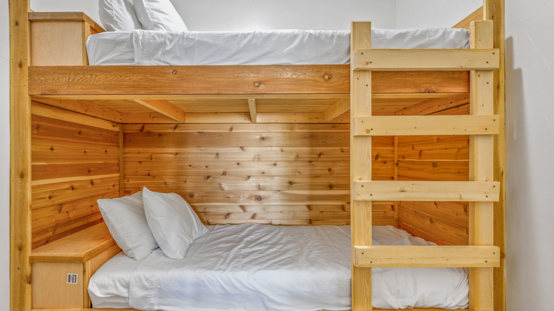 - Sleeps up to 4; 1 king bed, 1 bunk bed